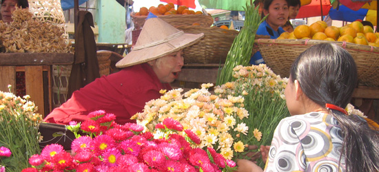 Drugo jutro sva se odpravila na enodnevni trek do vasi, skrite globoko v hribih. Vodič, ki je sicer pregrešno lep katoliški duhovnik, naju je popeljal skozi vasi, kjer moški še zdaj cele dneve poležavajo in kadijo opij, ženske pa delajo na polju. Večina se jih preživlja s prodajo čaja. Pravijo, da je njihov najboljši v celi Burmi in ogromno ga prodajo na Kitajsko. Najprej sicer malo pogoljufajo in ga pobarvajo na rumeno, ker tak menda doseže višjo ceno na trgu. Vsi vaščani so tekli vkup, ko so naju videli prihajti proti vasi. V svojih tradicionalnih nošah so se smejali in kazali od grenkega oreščka rdeče zobe. Z velikim zanimanjem so si me ogledovali in me božali po rokah. Menda sem bila prva belopolta ženska v njihovi vasi. Jih Inge res ni nikoli obiskala?